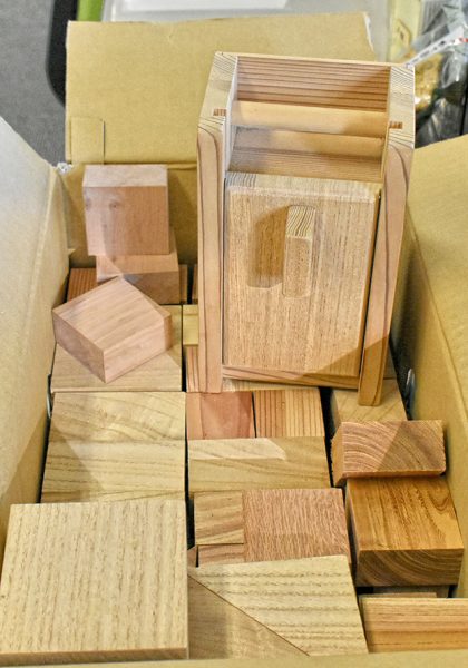 桜、みかんなど、普段は積み木に使わない木々も含まれているそうです。